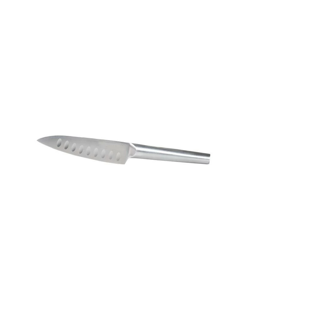 - Set includes: 7 in. Santoku knife with holes, 5 in. Santoku knife grooved, 4 ½ in. Santoku knife 7 in. x 3 ½ in. cleaver