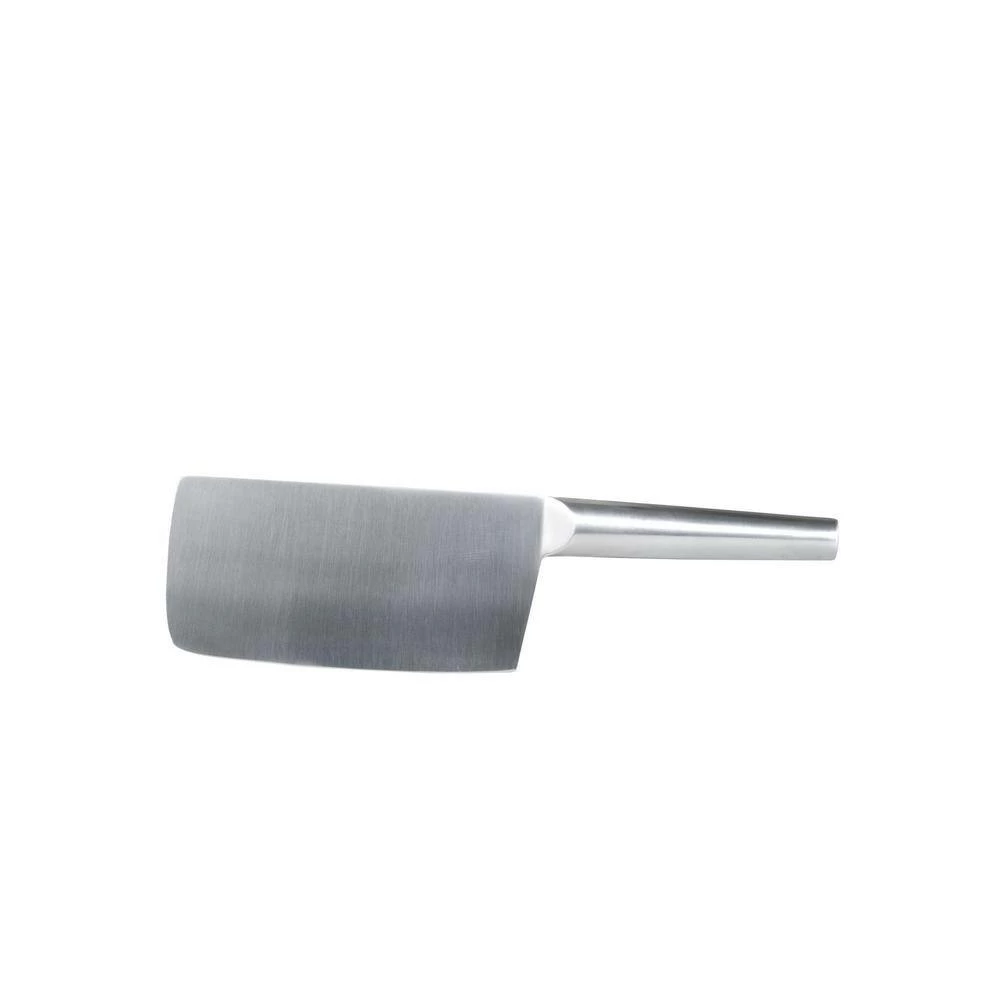 These knives are made of high quality stainless steel and feature stylish stainless steel handles. Easily sharpened and holds their edge well. The handle is safe, high impact, slip resistant as well as antimicrobial and micro-organism safe. The knife is and low temperature resistant and safe to use in the freezer. Set includes: 7 in. Santoku knife with holes, 5 in. Santoku knife grooved, 4-½ in. Santoku knife, 7 in. x 3-½ in. cleaver.