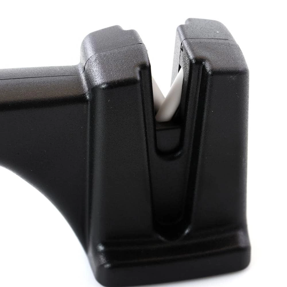 The Oster Trussville Knife Sharpener in Black is great for sharpening a vast assortment of blades. This kitchen tool is ideal for dull blades exposed to everyday use as well as large knives fit for specialized cooking. The Non-slip base and ergonomically designed handle allow for a safe and secure grip while sharpening. The sharpener is crafted from light weight plastic, making it convenient to move and adjust the angle for easier sharpening.