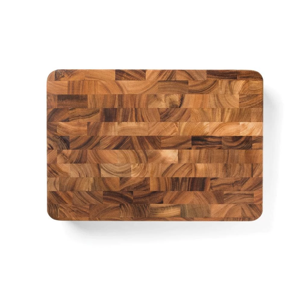 Unlike traditionally made boards, end grain construction is less dulling to cutlery because the wood grain direction accommodates cutting instead of resisting it. Wear and tear is minimized on both cutlery and on the board, giving more longevity to all your cutting tools. This multi-functional board serves as a prep station, cutting and serving board to satisfy all your kitchen-needs. After washing and drying, rejuvenate and protect the wood by rubbing it down with Ironwood Butcher Block Oil. Apply the oil liberally and allow it to soak in thoroughly before use. Regular application of our Butcher Block Oil will prevent cracking and preserve the rich natural colors of the wood.