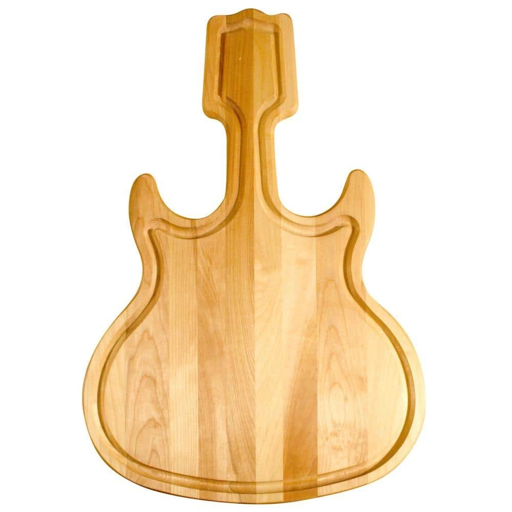 The Catskill Craftsmen Guitar-Shaped Cutting Board is durably built from wood and is reversible for easy food prep. It is given an oiled finish and has a juice groove on 1 side. Made from solid hardwood.